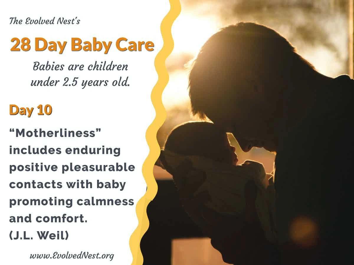 There is a lot of misinformation about babies and their needs, and parents are often encouraged to ignore baby’s signals. Bad idea. Babies are “half-baked” at birth and have much to learn with the help of physical and emotional support from caregivers. Taking care of baby’s needs is an investment that pays off with a happier, healthier child and adult. Here are 28 days of reminders about babies and their needs.